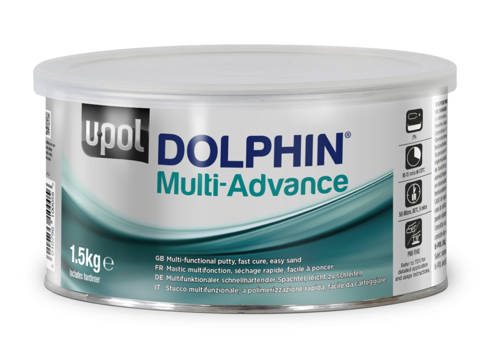 A premium, technically advanced putty for fine to deep repairs. It improves productivity through a combination of fast curing and easy sanding, even after 24 hrs. Suitable for multiple substrates, it’s easy to spread with superior vertical hold. It delivers an ultra-fine, pinhole resistant finish for consistently high-quality results every time. Approved as part of the Axalta standard repair process. U-POL and DOLPHIN® are registered trademarks of U-POL Ltd, an Axalta Coating Systems company© 2024. Approved as part of the Axalta standard repair process.