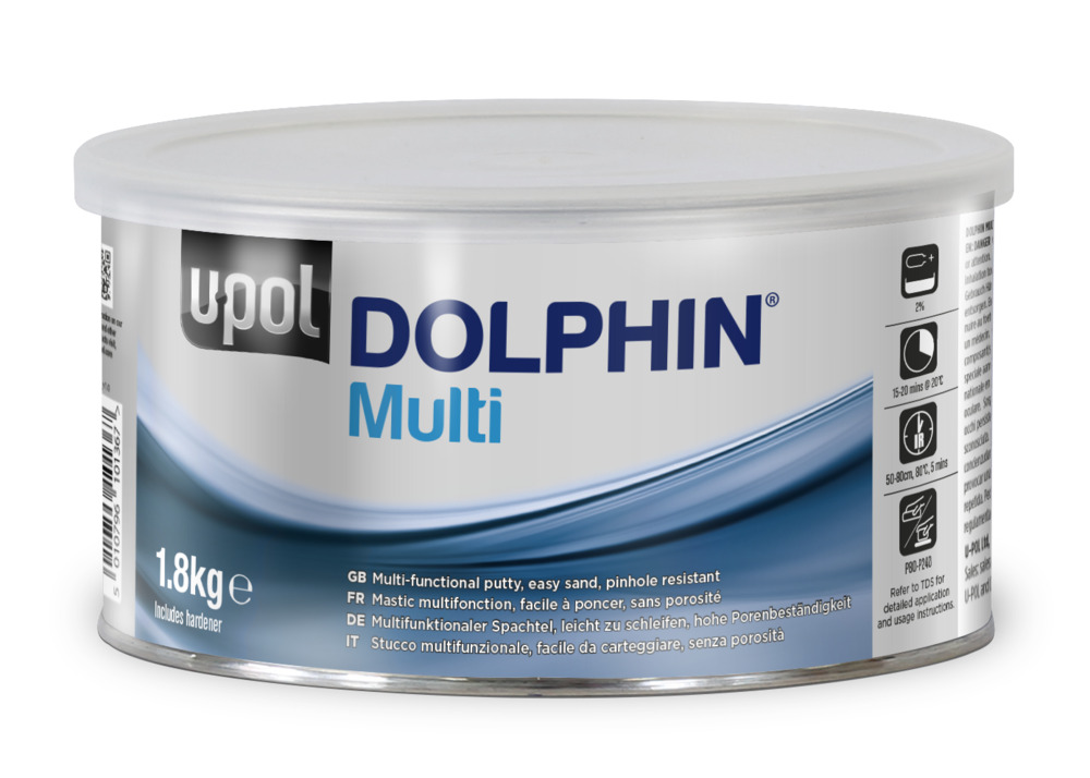 A high quality, multi-functional putty for medium to fine depth repairs. It has a smooth consistency and is easy to apply with excellent vertical hold. It is easy to sand and provides excellent adhesion to a wide range of substrates including galv. It delivers a fine finish which has excellent pinhole resistance. Approved as part of the Axalta standard repair process. U-POL and DOLPHIN® are registered trademarks of U-POL Ltd, an Axalta Coating Systems company© 2024. Approved as part of the Axalta standard repair process.